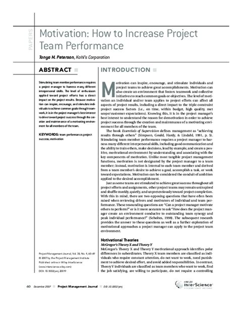 Motivation : How To Increase Project Team Performance Pdf